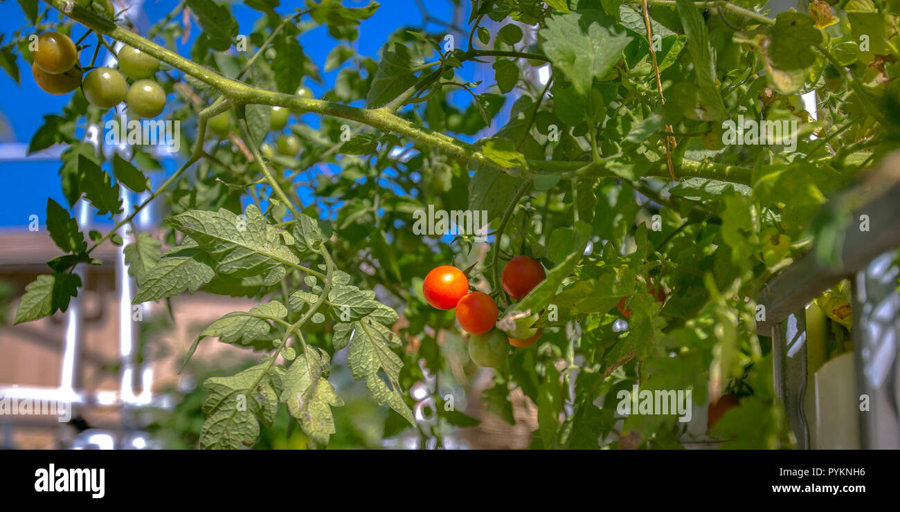 Aquaponics Method Of Growing Red Cherry Tomatoes Stock Photo Alamy