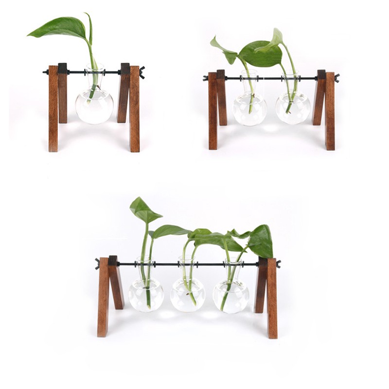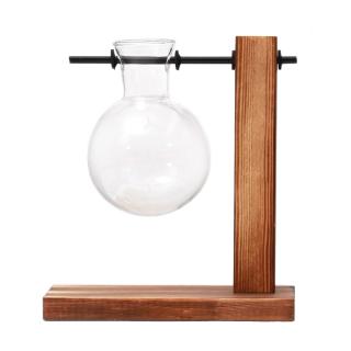 Hydroponic Plant Transparent Glass Vase Diy Wooden Stand Holder