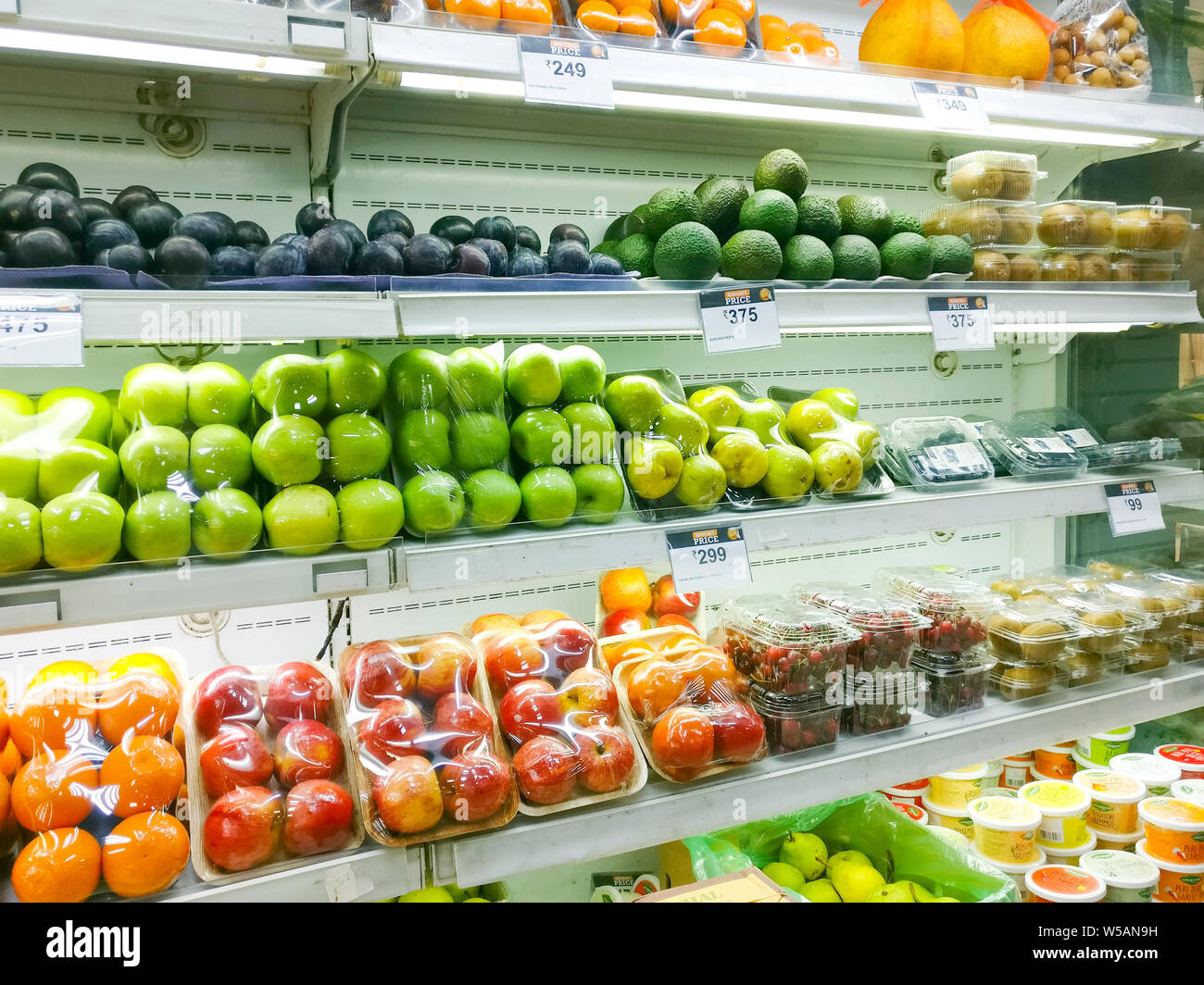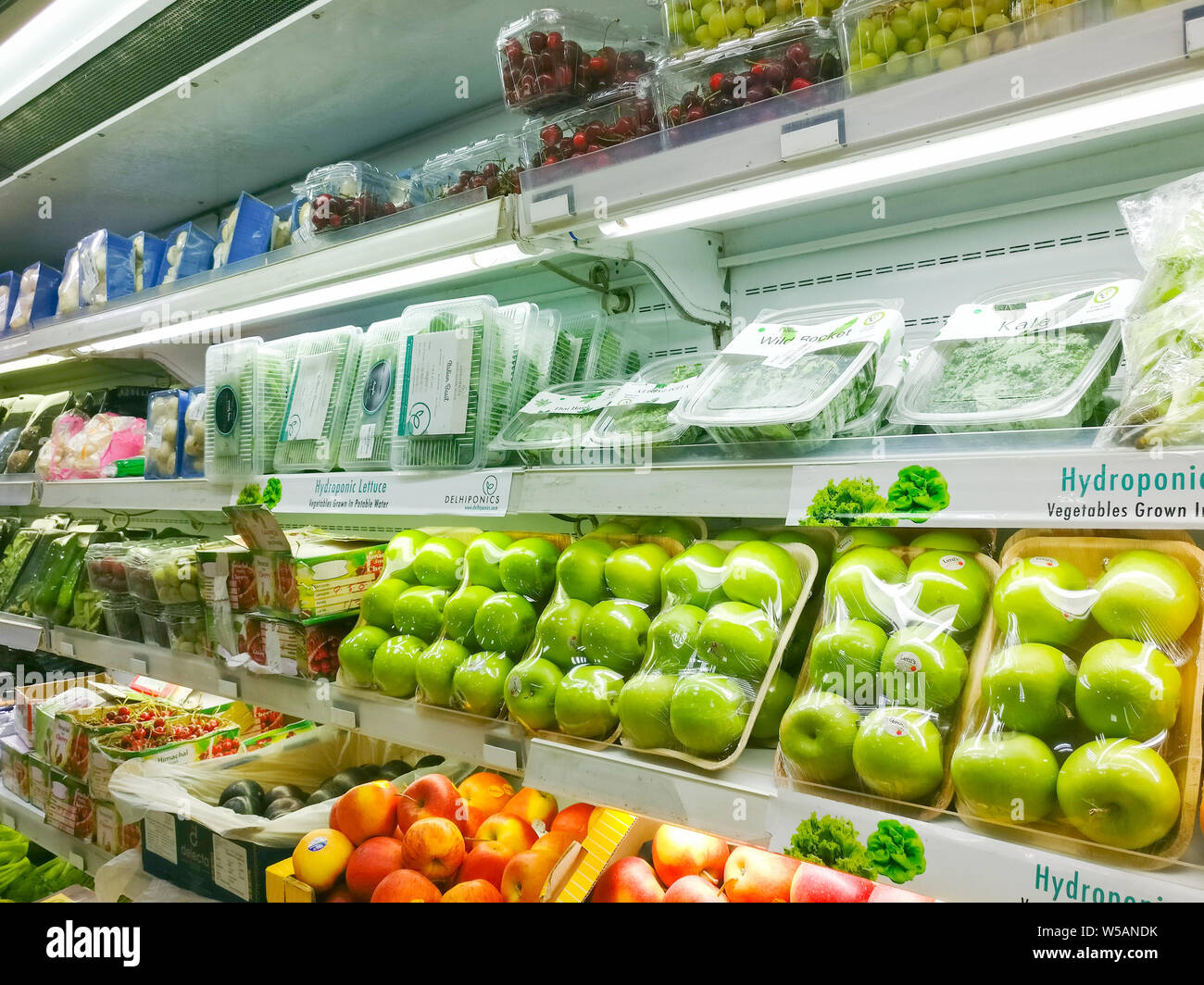 Organic Hydroponic Vegetables Fruits On A Supermarket Shelf