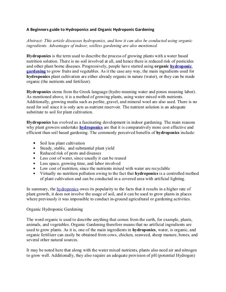 A Beginners Guide To Hydroponics And Organic Hydroponic Garderning